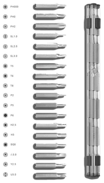 Насадки надежно держатся на отвертке за счет мощного магнита. Также это упрощает смену насадок.
