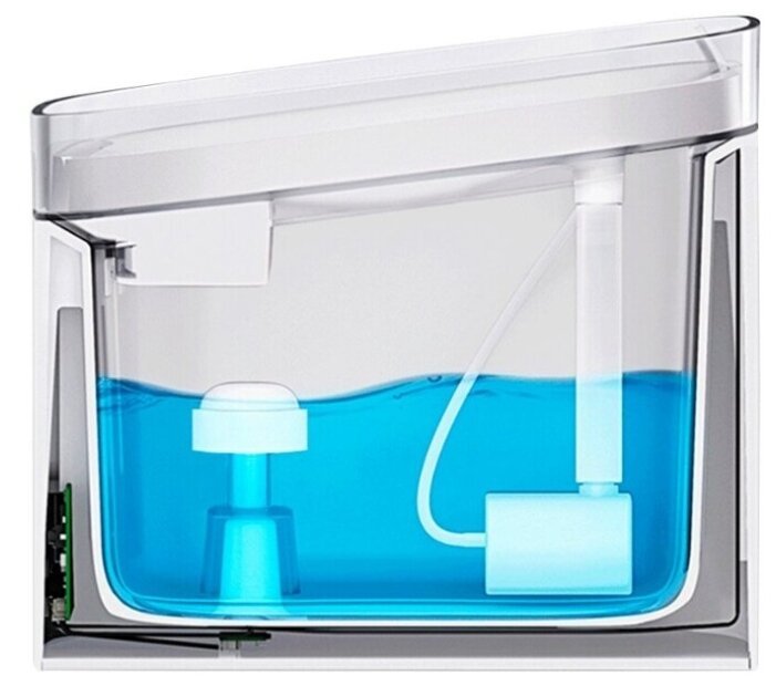 Дозатор оборудован механизмом, который обеспечивает непрерывный поток воды, что позволяет поддерживать ее чистоту и насыщение кислородом, исключает застой и появление неприятного запаха. Дополнительно она проходит через систему четырех фильтров, задерживающих мусор, шерсть животных и примеси, улучшая ее вкусовые качества.