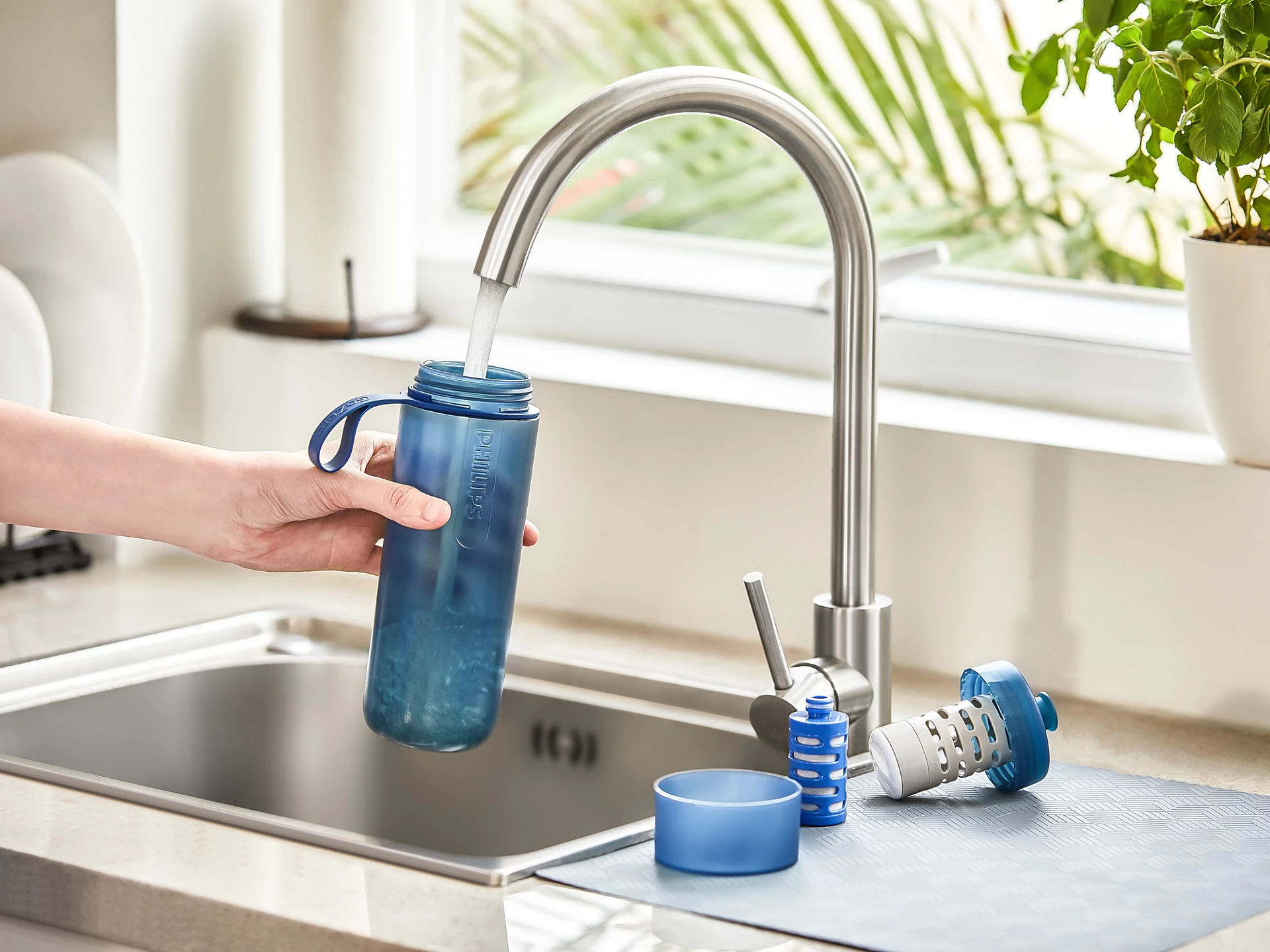 Изготовленный из инновационного активированного углеродного волокна, фильтр Fitness удаляет до 99%* хлора и других веществ, ухудшающих вкус, не ухудшая при этом поток воды. Просто наполните бутылку, сожмите и пейте!