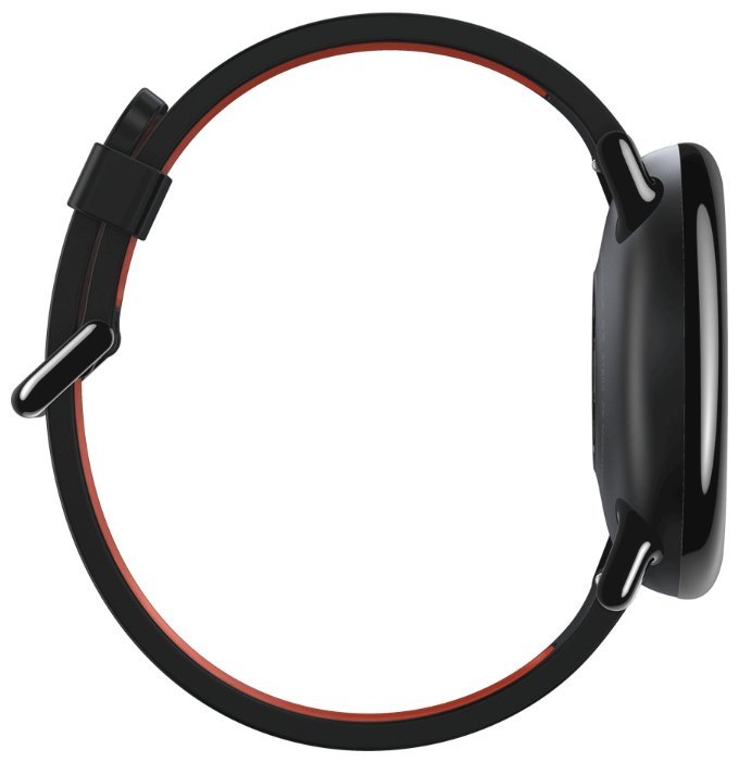 Дизайн часов Xiaomi Huami Amazfit Watch порадует каждого почитателя спортивного образа жизни. Настоящий спортивный девайс имеет ровную округлую форму, которую отлично подчеркивает керамический ободок. Круглый экран полностью защищен толстым стеклом. Внизу дисплей немного обрезан. Здесь скрывается специальный датчик освещения. Тыльная сторона часов произведена из матового пластика. Черный цвет этих умных часов идеально подойдет как для мужчин, так и для женщин.