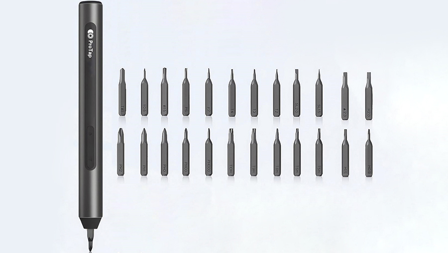 Отвертка выполнена из алюминия и имеет 25 магнитных бит. Пригодится как для профессионального ремонта, так и в быту. Разъёмы подходят для починки телефонов, компьютеров, часов, очков, игрушек и для многих других популярных приборов, которые используются в быту.