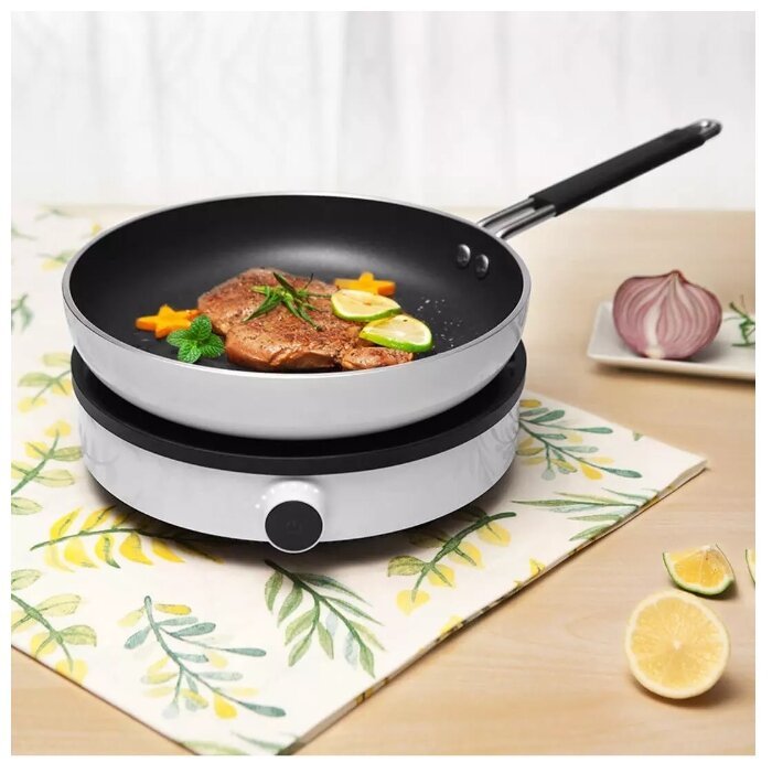 Индукционная плита Xiaomi имеет всего одну варочную панель, но это совершенно не отодвигает её на второй план, так как далеко не каждый человек занимается одновременно приготовлением более одного блюда. На такой плите очень удобно варить суп, тушить, жарить и пр. Ведь её мощности хватит на создание любого блюда. При этом потребляет она всего 2100 Вт. Подключается к электрической сети 220 Вт. Так как Hоme Induction Cooker является индукционной, следовательно, она совместима не со всей посудой. Для того, чтобы понять какая посуда подходит, нужно всего лишь приложить магнит ко дну емкости. И если он притянется к поверхности, значит такая посуда подходит для эксплуатации на варочной поверхности плиты Xiaomi.