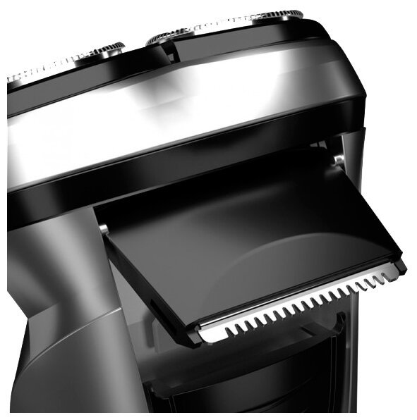 Электробритва оборудована вспомогательным лезвием, которое расположено на тыльной стороне устройства. Оно предназначено для подведения бакенбард, усов или бороды и позволяет сделать их более выразительными.