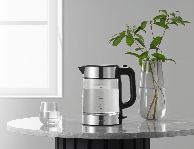 Чайник Xiaomi Electric Glass Kettle 1.7L — стеклянный чайник со светодиодной подсветкой. Большой объем, боросиликатное стекло и мощность 2200 Вт. Съемный фильтр не пропустит в чашку напить, а LED-подсветка подскажет, когда чайник закипит.
