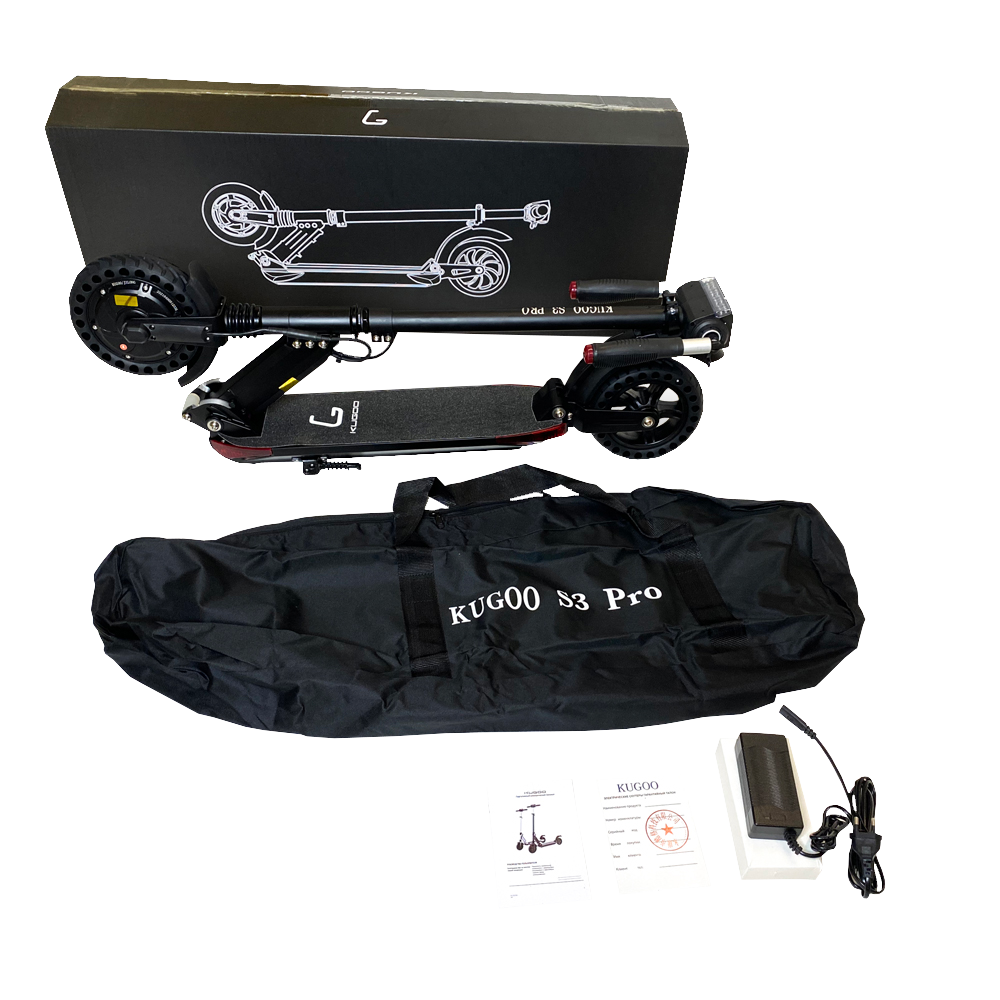 Электросамокат, комплетующие, руководство пользователя, упаковка