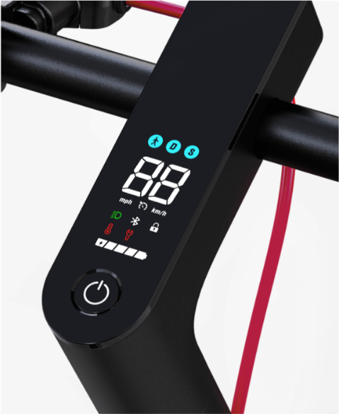 Приборная панель расположена под удобным для пользователя углом, что позволяет водителю видеть скорость, оставшийся заряд аккумулятора, сигналы поворота и состояние самоката во время поездки.