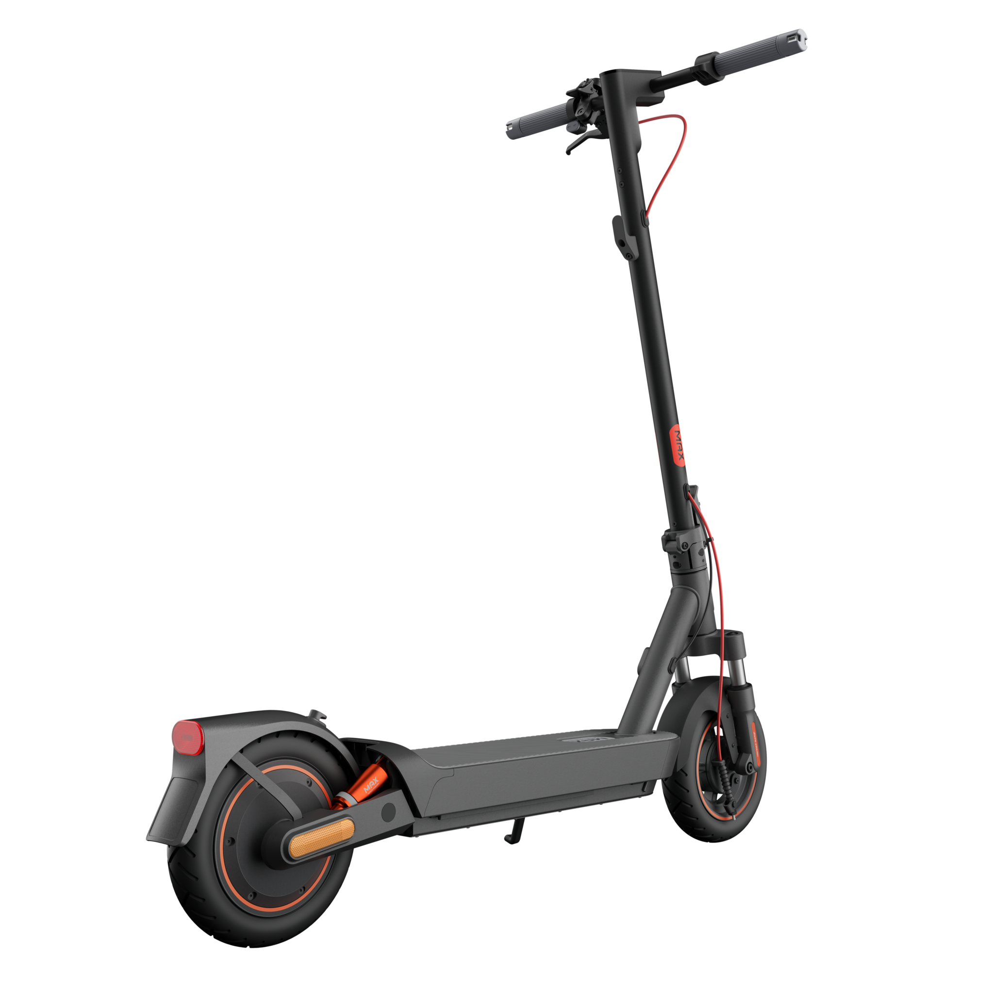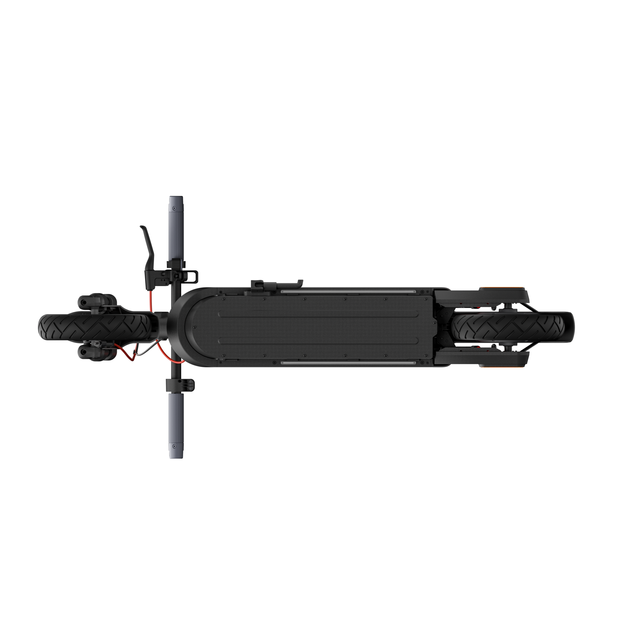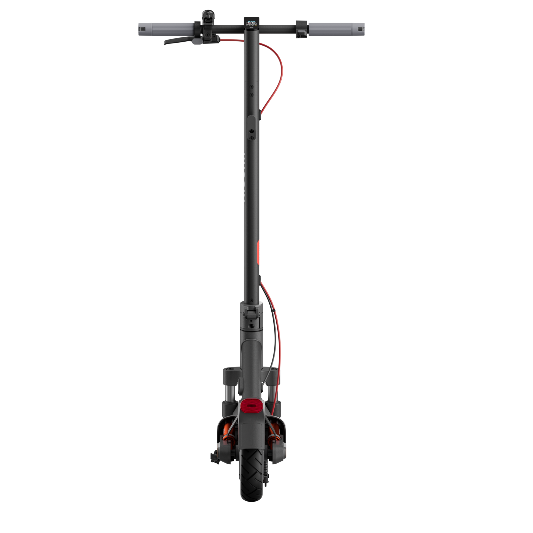 Электросамокат оснащён механическим барабанным тормозом спереди и электронным E-ABS сзади. Такая комбинация обеспечивает уверенное торможение и сокращает тормозной путь, повышая безопасность при любых дорожных условиях
