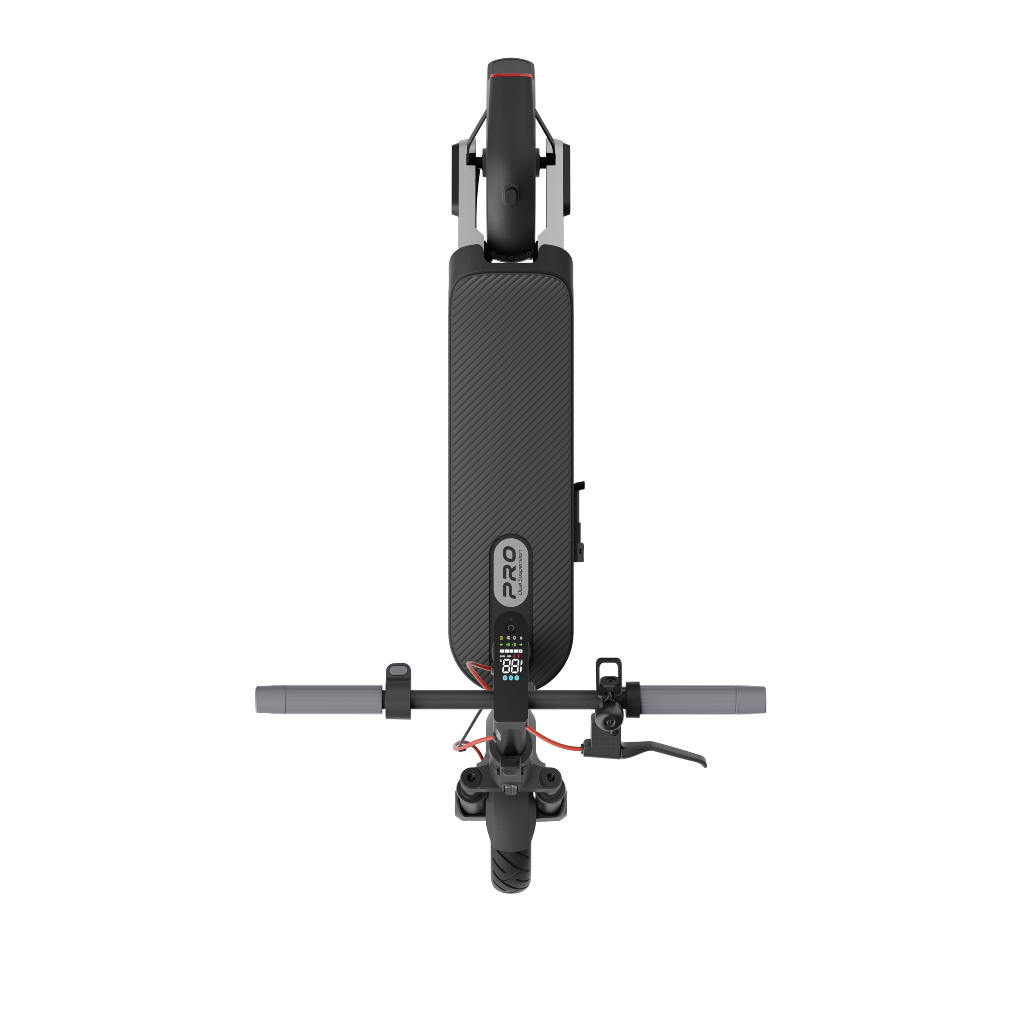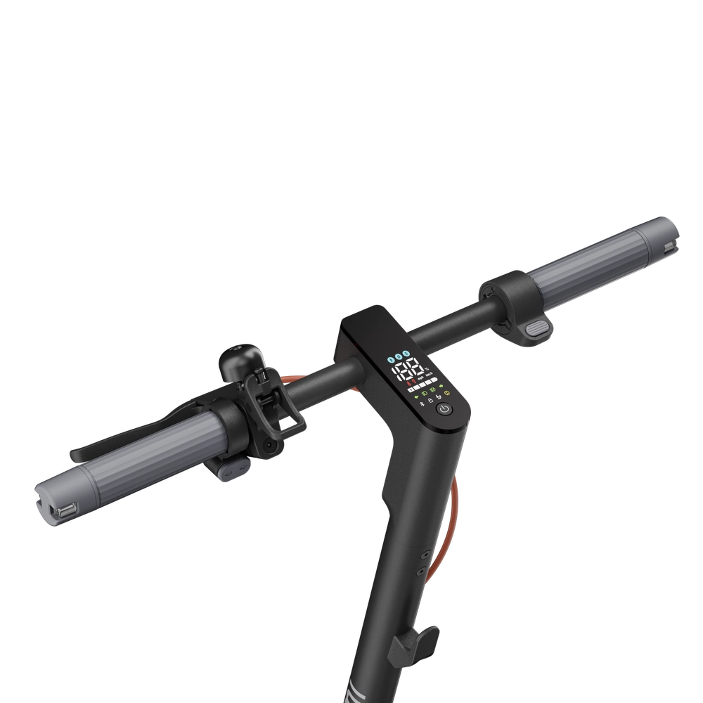 Приборная панель, расположенная под удобным углом, позволяет в любой момент во время езды проверять текущую скорость, оставшийся заряд батареи, сигналы поворота и состояние скутера.