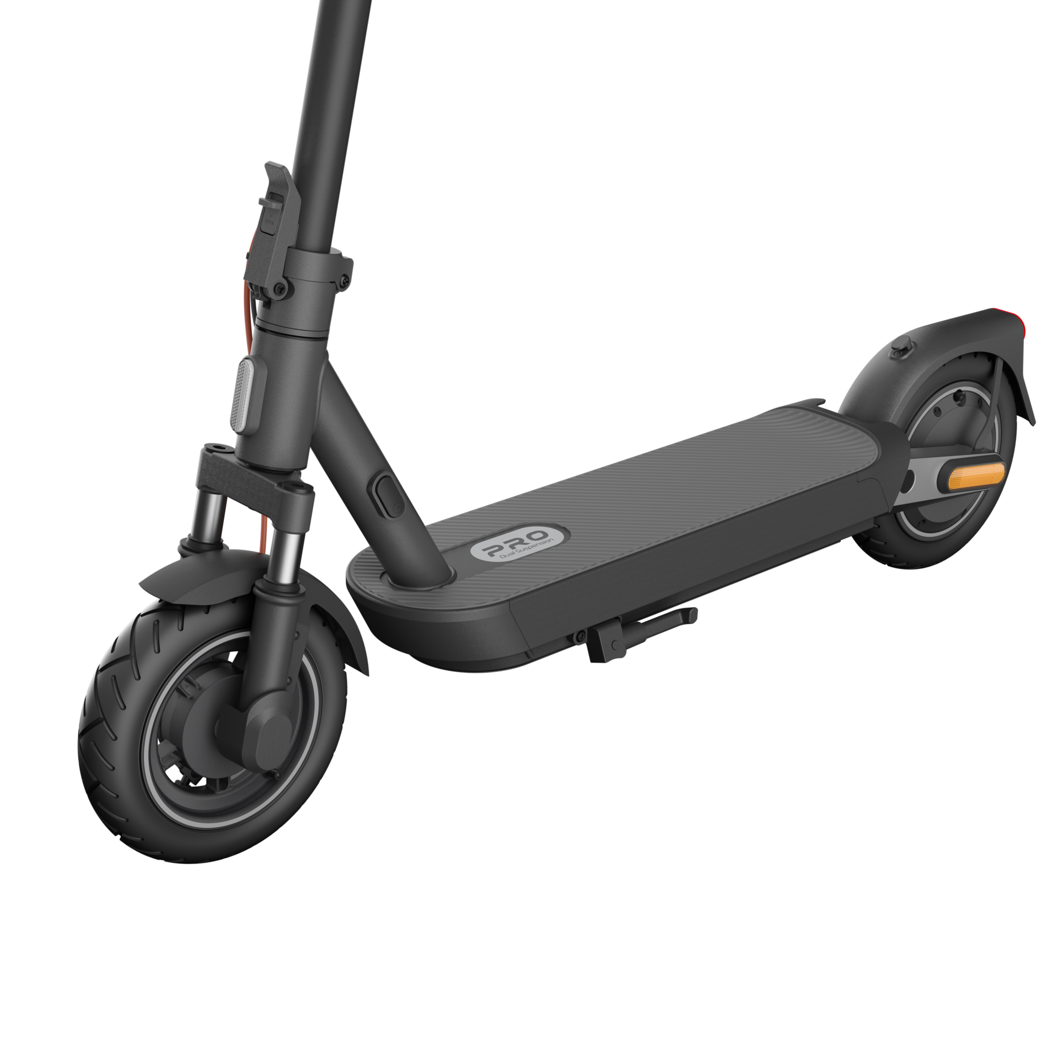 Самокат оснащен 10-дюймовыми 60-миллиметровыми* бескамерными шинами, разработанными для превосходной герметичности и превосходной амортизации. Широкая площадь контакта с землей обеспечивает надежное сцепление на поворотах, обеспечивая безопасную и стабильную езду.