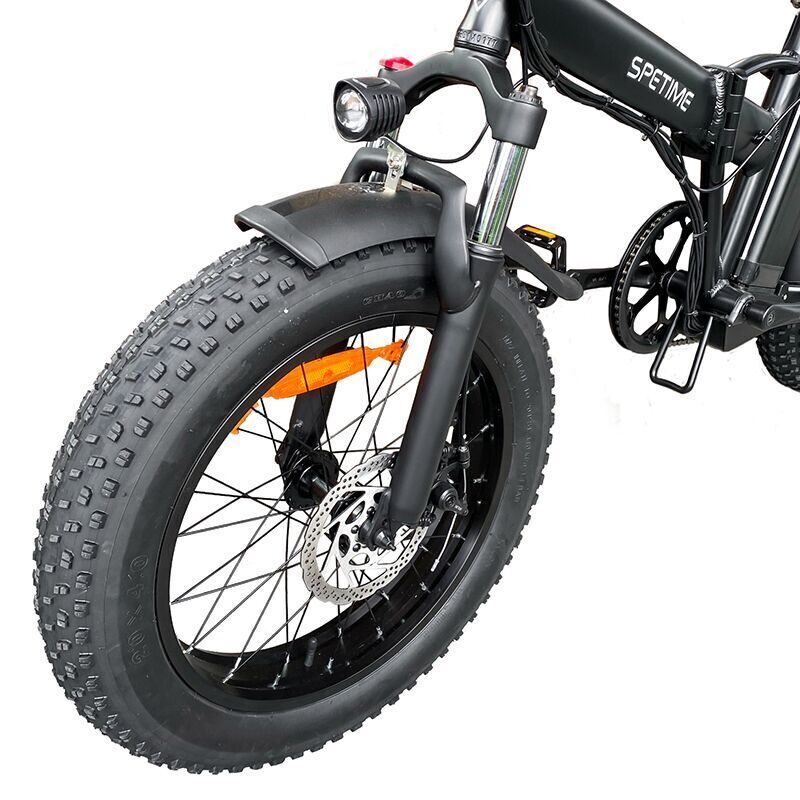 Электровелосипед Spetime E-Bike F6 - легкий складной велосипед с мощностью 500 Вт и скоростью до 32 км/ч. Запас хода у него до 35 км, а дальше можно просто заменить батарею на новую.