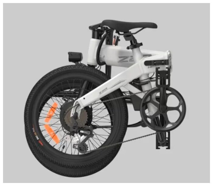 Отличительной особенностью электровелосипеда Xiaomi Himo Z20 является компактный дизайн и складная конструкция, что позволяет легко хранить и транспортировать велосипед. Он складывается в трех местах, а его полная сборка занимает всего около 10 секунд. В сложенном виде размер устройства всего 860 х 740 x 400 мм. Вес велосипеда 21 кг. Аккумуляторная батарея встроена в легкую алюминиевую раму, не утяжеляя визуально конструкцию. Также конструкция велосипеда включает встроенный воздушный насос, который можно использовать, чтобы подкачать шины.