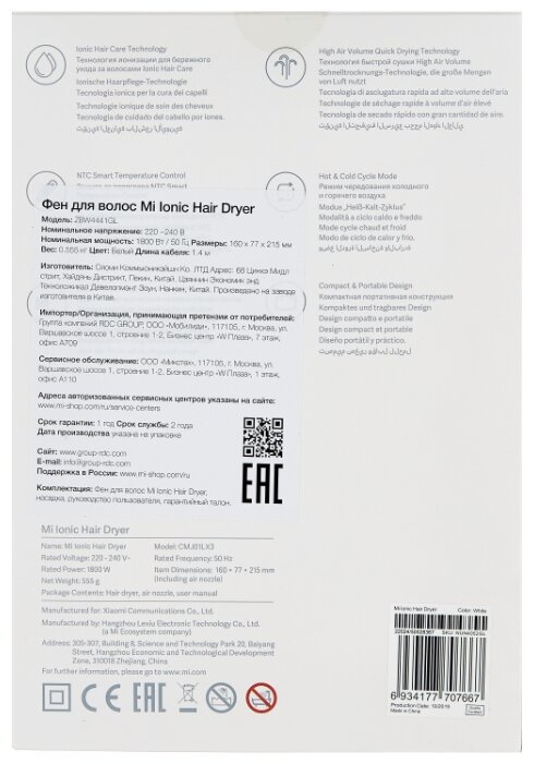 Xiaomi mi с интеллектуальным контролем температурного режима поможет вам быстро высушить волосы и позаботиться об их здоровье. Ионизация сделает ваши локоны более послушными и блестящими. Игловидные электроды мгновенно расщепляют водные частицы, превращая их в отрицательно заряженные ионы.