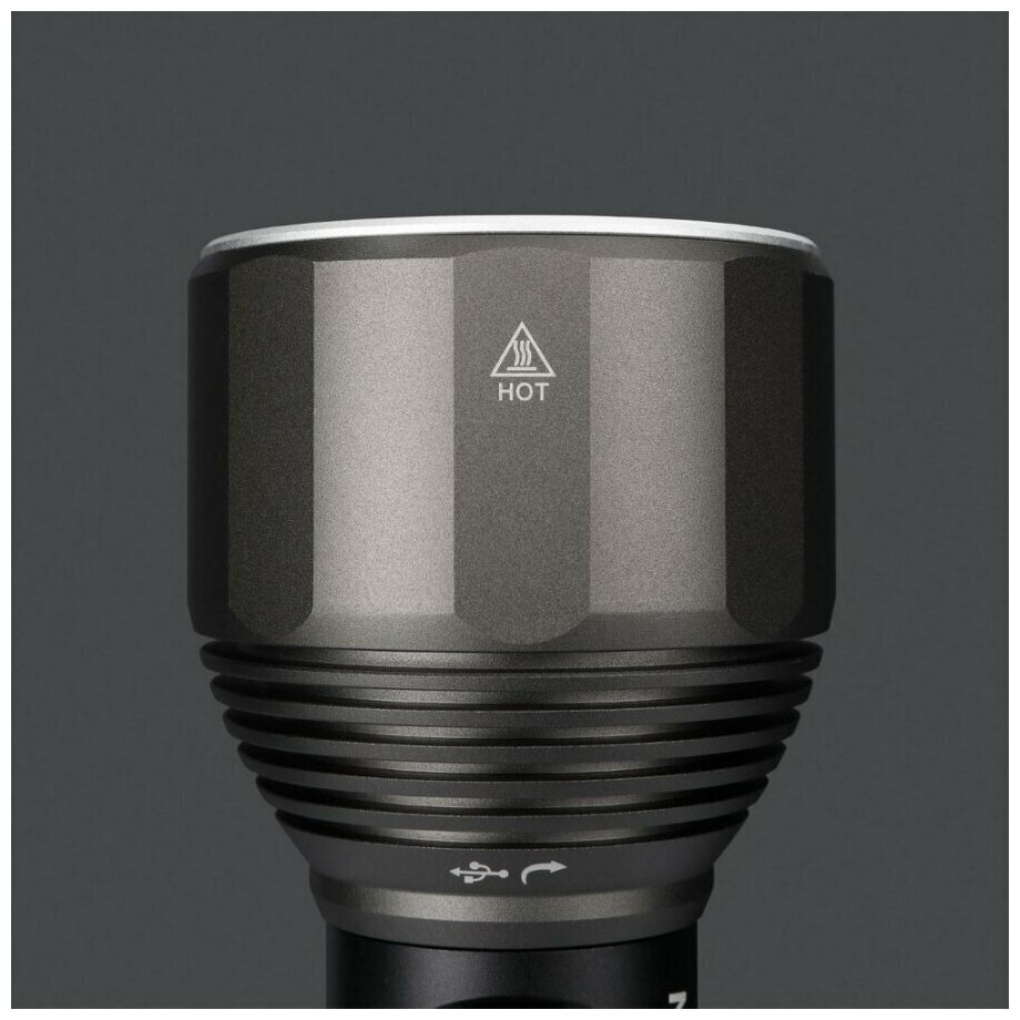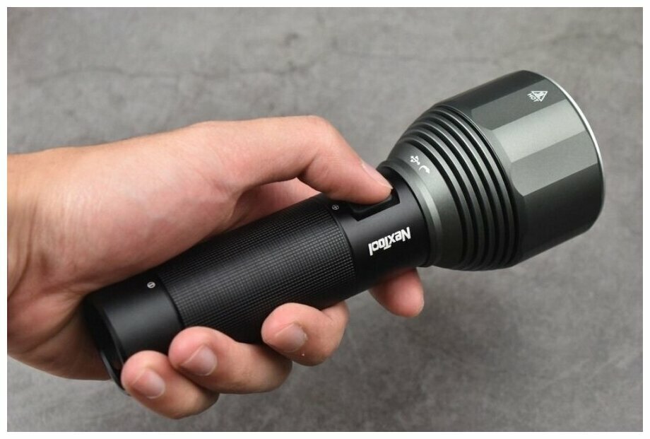 Фонарик надежно защищен от попадания воды по стандарту IPX7. Он может до получаса провести под водой толщиной 1 метр.