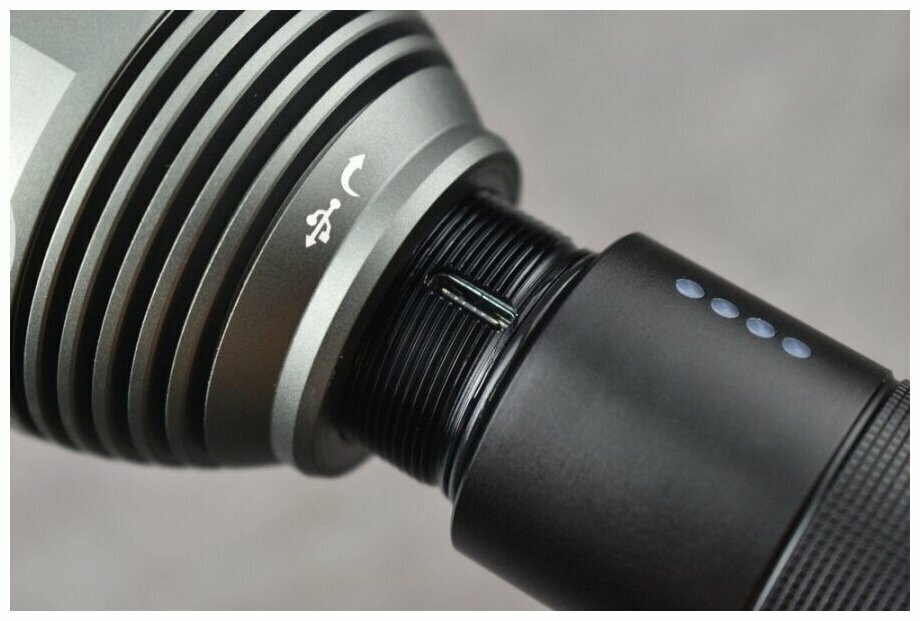 Для зарядки фонарика можно использовать любую Type-C зарядку, для полного заряда ему требуется 4 часа. LED-индикаторы на корпусе информируют об уровне оставшегося заряда.