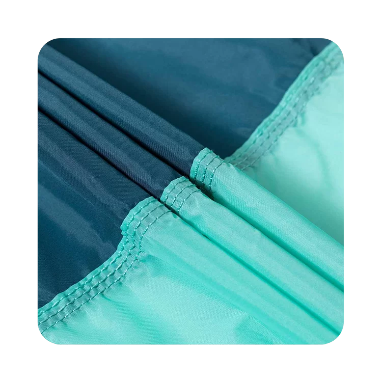 Поверхность гамака выполнена из мягкой таффеты 210Т, которая по своей мягкости намного превосходит брезент или нейлон