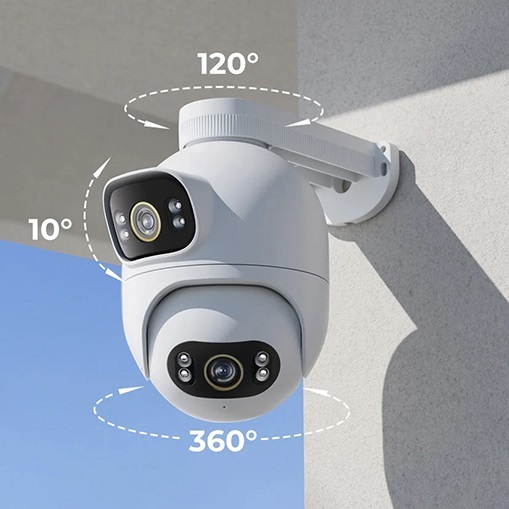 Вы можете установить наружную камеру с интеллектуальным управлением в наиболее подходящей зоне благодаря гибким и надежным фиксаторам. Двойные горизонтальные и вертикальные подвесы обеспечивают обзор на 360° и 120° соответственно. Девайс является комплексным решением в области обеспечения высокого уровня безопасности вашего дома, офиса, гаража.