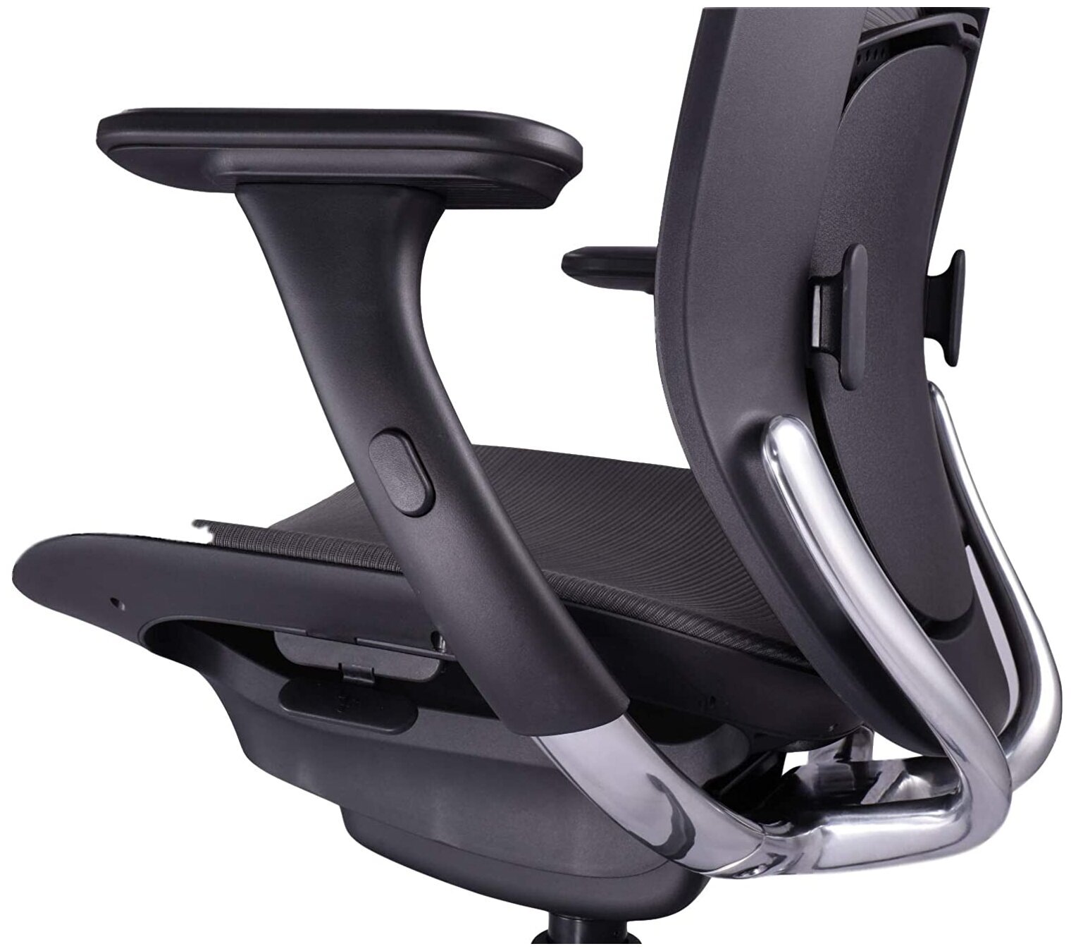 Прочный кронштейн из алюминиевого сплава объединяет спинку и подлокотники в одно целое.При любом наклоне кресла подлокотники перемещаются вместе со спинкой, что позволяет рукам находится в расслабленном состоянии. Трехмерная регулировка и многоуровневая фиксация по высоте позволяют расположить запястья и кисти рук в максимально удобном положении.