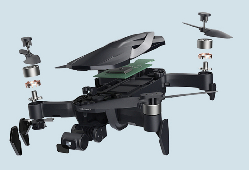 Funsnap Diva Drone оснащен двойной системой стабилизации. У него 2-осевой механический подвес и цифровая стабилизация EIS