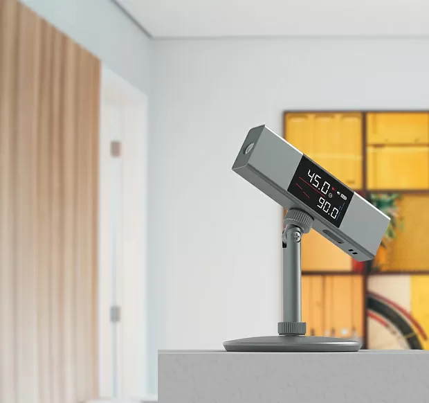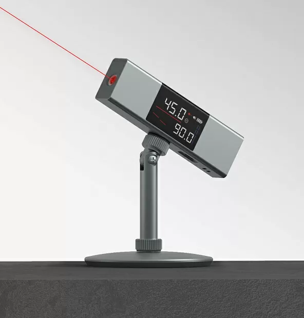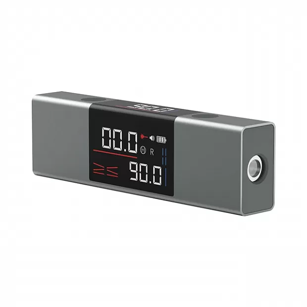 Уровень Duka LI1 Laser Casting Angle Meter оснащен интеллектуальной защитой от наклона. Если наклон до 4 градусов, он автоматически выравнивается уровнем. Когда угол наклона более 4 градусов, загорается красный предупреждающий индикатор.