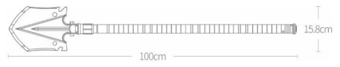 Общая длина многофункциональной лопаты NexTool - 100 см (Большая лопата). Она идеально лежит в руке, а ее длина отлично подходит для опоры при длительных переходах, для рубки зарослей веток на пути и даже для защиты от диких животных.
