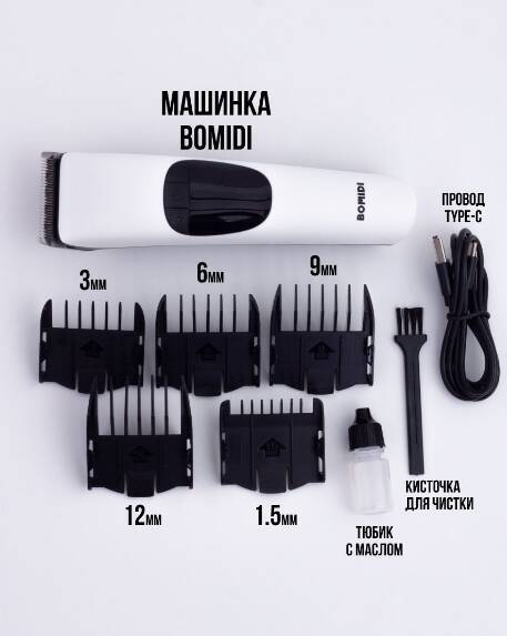 Машинка для стрижки волос BOMIDI L1 оснащается встроенным аккумулятором. Доступно четыре скоростных режима. В комплект входят насадки для регулировки длины среза.