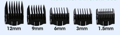 Пластиковые насадки с длиной среза 1,5 мм, 3 мм, 6 мм, 9 мм и 12 мм