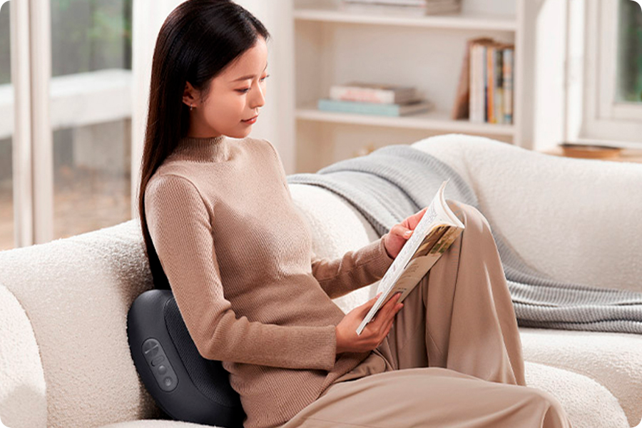Обе стороны подушки имеют функцию подогрева на 3 уровнях, что станет настоящим спасением в холодную погоду. Она не только дарит приятное тепло, но и усиливает расслабляющий эффект массажа, помогая снять напряжение и улучшить самочувствие.