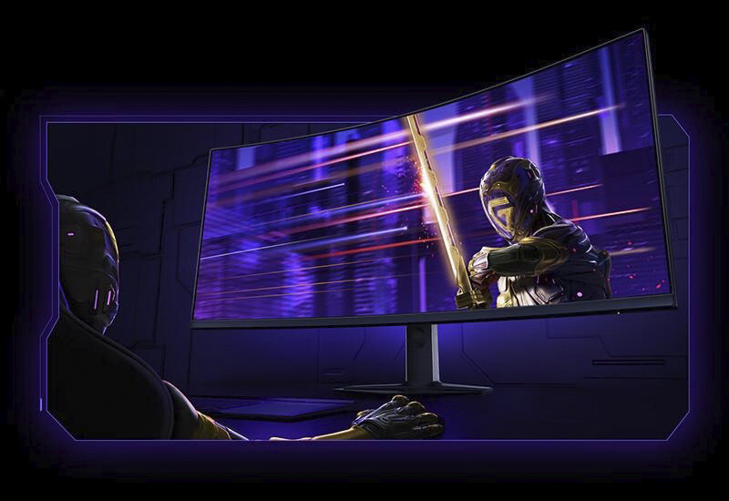 Монитор оснащен VA-матрицей с разрешением WQHD (3440x1440 пикселей) и соотношением сторон 21:9. Это обеспечивает невероятную детализацию: вы увидите мельчайшие текстуры, заметите противника на самых дальних дистанциях и сможете работать с несколькими окнами одновременно. Широкий цветовой охват 95% DCI-P3 гарантирует реалистичную и сочную картинку, а яркость в 350 нит позволяет комфортно использовать монитор даже в хорошо освещенных помещениях.