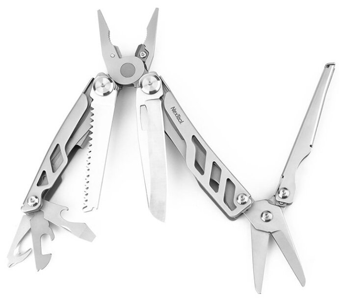 Плоскогубцы, основное лезвие, ножницы, пила и открывашка сделаны из прочного сплава HRC50, обладающей великолепной режущей силой, и обладающими антикоррозийными свойствами.