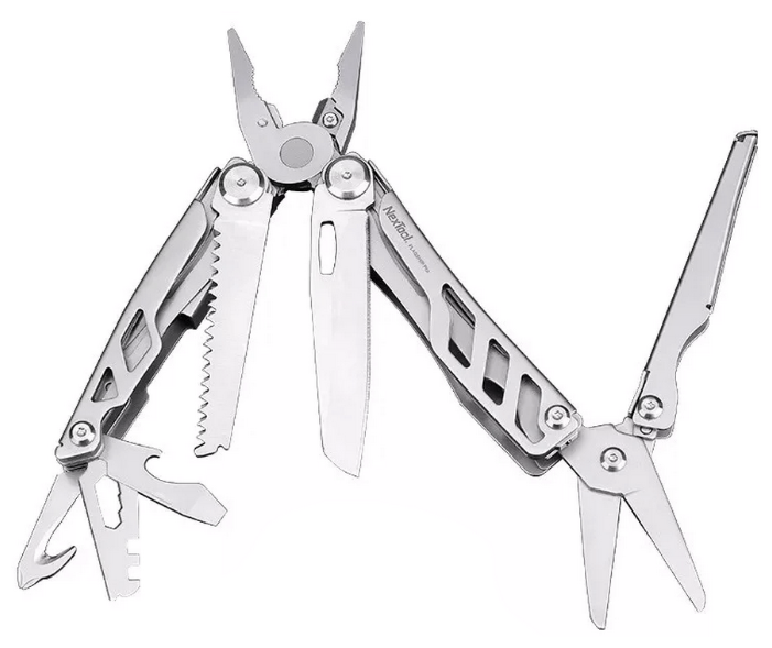 Мультитул из нержавеющей стали станет незаменимым спутником и помощником на даче, в поездке, в турпоходе, дома и на работе. Благодаря своей многофункциональности совмещает в себе целый ряд полезных инструментов: кусачки, плоскогубцы, пилу, острогубцы, стропорез, отвертку Philips, ножницы, нож, открывалку для банок, велосипедный ключ, линейку и стеклобой