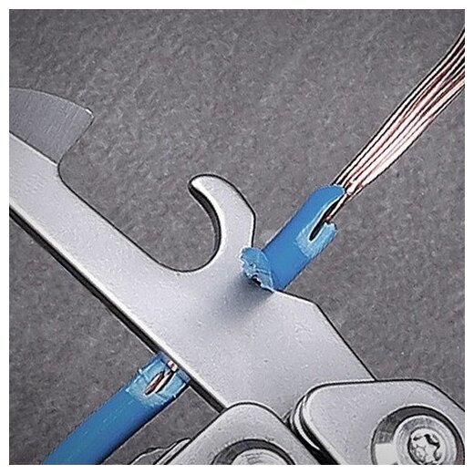 Прибор включает в себя множество функциональных возможностей: линейка, отвертка, стропорез, стеклобой, велосипедный спицевой ключ, шестигранный ключ. В этой же конструкции находятся большие ножницы, которые могут спокойно разрезать бумагу или ткань.