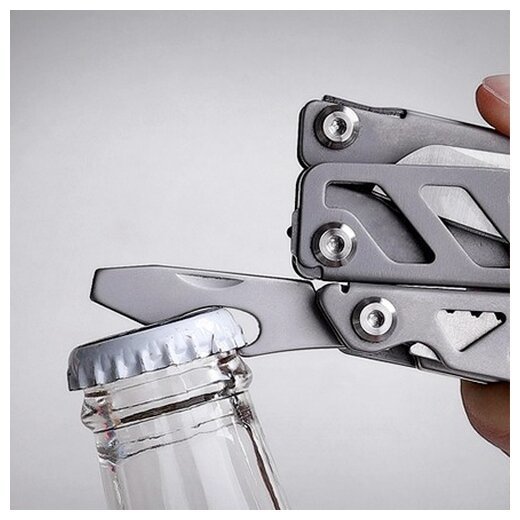 Мультитул может выполнять функции сразу нескольких инструментов: пилы, кусачек, стропореза, острогубцев, плоскогубцев, двух отверток (плоской и крестовой), ножниц, ножа, открывашки бутылок, велосипедного ключа, линейки и стеклобоя. Прибор изготовлен из нержавеющей стали, поэтому он устойчив к коррозии и другим внешним повреждениям.