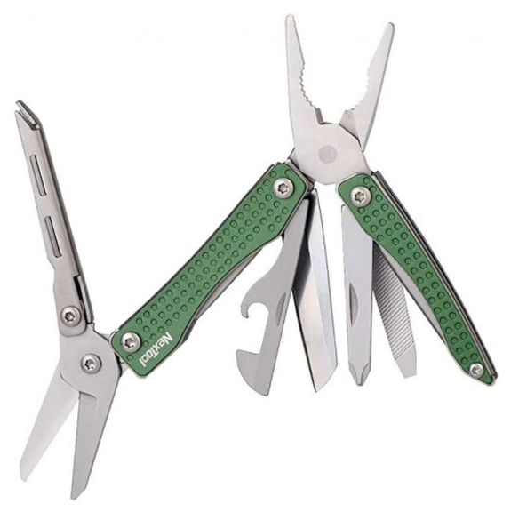 Такой мультитул поможет вам решать ежедневные задачи по ремонту. В нём есть плоскогубцы, нож, отвёртка, открывалка для бутылок и консервный нож. Компактный, но многофункциональный. Легко удовлетворяет потребности в резке, скручивании, закручивании, отпиливании и многом другом.