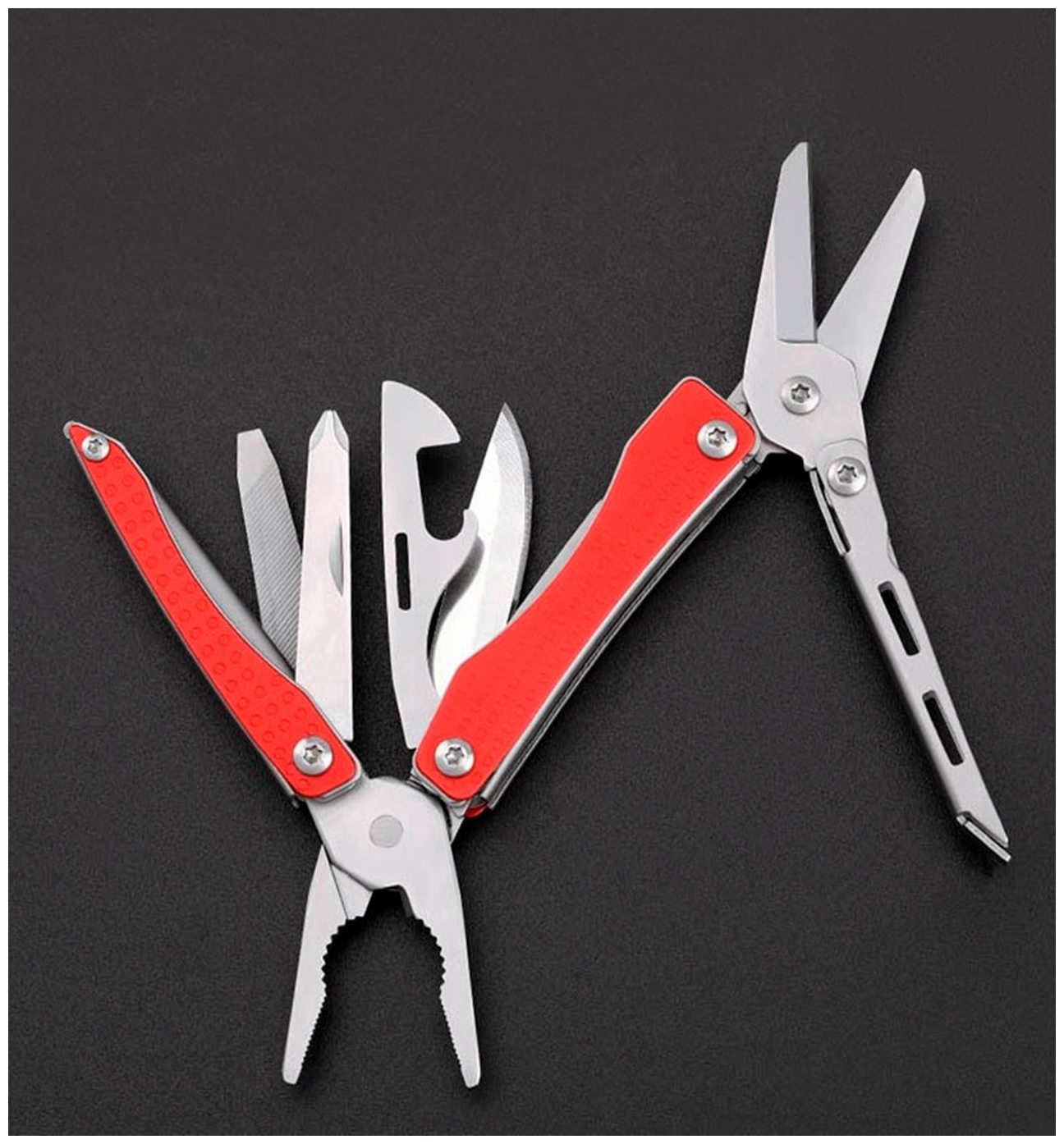 Такой мультитул поможет вам решать ежедневные задачи по ремонту. В нём есть плоскогубцы, нож, отвёртка, открывалка для бутылок и консервный нож. Компактный, но многофункциональный. Легко удовлетворяет потребности в резке, скручивании, закручивании, отпиливании и многом другом.