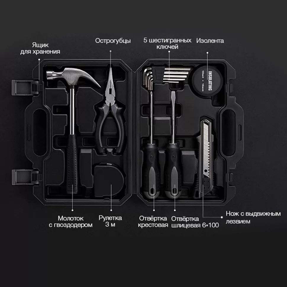 Набор JIUXUN TOOLS 12-in-one Daily Life Kit Pro станет незаменимым помощником по дому. С его помощью можно выполнять самые разные мелкие работы, в том числе собирать и ремонтировать мебель.