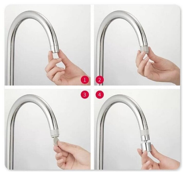 Насадка на смеситель DXSZ003 имеет встроенный преобразовательный вал небольшого размера — всего 24 мм и дает возможность регулировать угол наклона воды 360° во всех направлениях, что позволяет увеличивать диапазон очистки, легко мыть и чистить крупные предметы, такие как кастрюли, сковородки и т.д. Быстрая подача воды и возможность широкоугольного поворота, делают процесс мытья посуды и использования вашей воды эффективнее и проще.