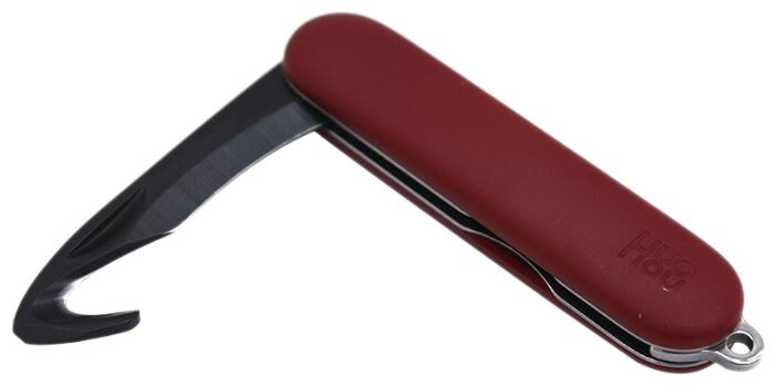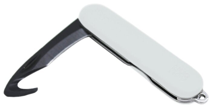 Одной из главных особенностей представленного ножа является серповидное лезвие, о которое практически невозможно случайно пораниться. С помощью такого лезвия максимально удобно вскрывать разные упаковки и коробки, а также разрезать веревки