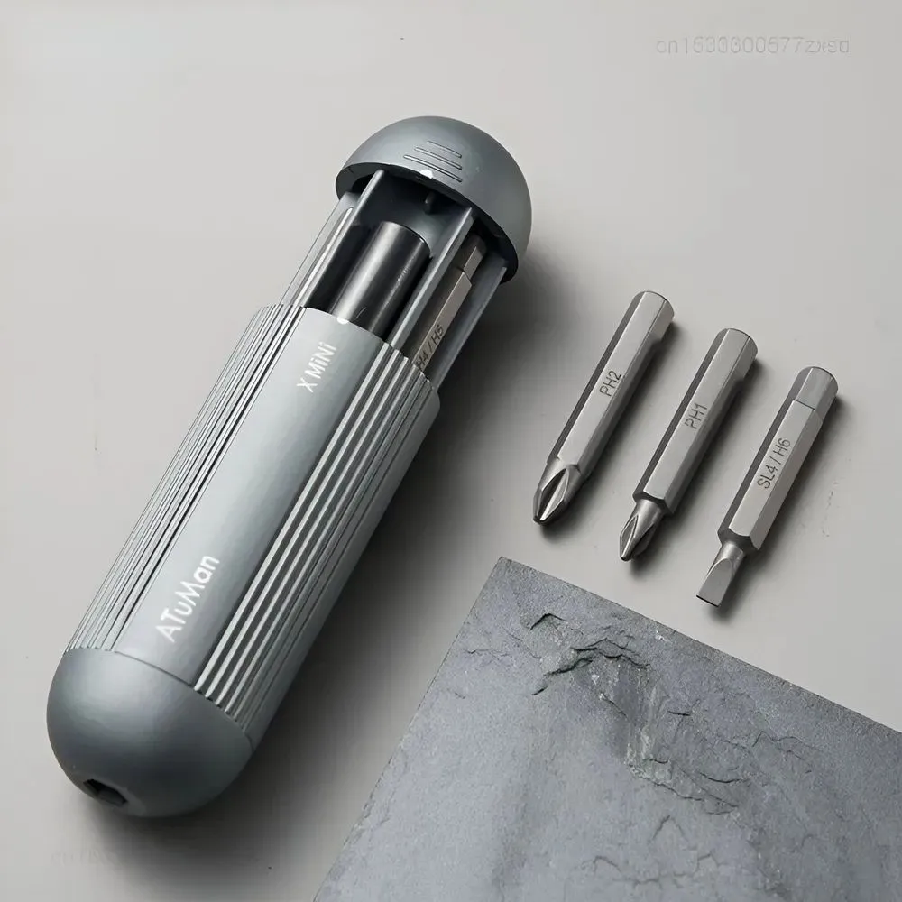 AtuMan Xmini весит всего 179 граммов и имеет диаметр всего 35 мм. Благодаря компактному размеру, отвертку легко держать в руках и носить с собой куда угодно. Твердая, износостойкая металлическая конструкция обеспечивает долговечность, при этом инструмент остается достаточно легким для повседневного использования.