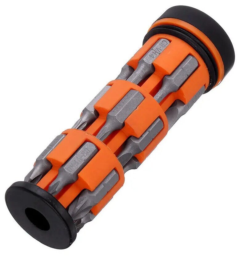 Все биты, идущие вместе и отверткой, расположены по кругу в определенной последовательности. Такая система хранения повышает удобство использования отвертки, ведь все нужные биты всегда будут под рукой.