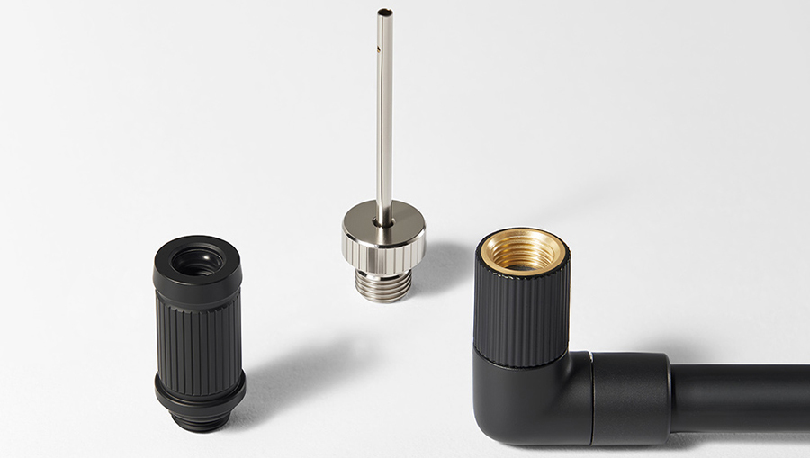 Все комплектные насадки удобно размещаются в компактной сумке с внутренним отделением, что позволяет надежно хранить аксессуары и исключает их потерю. Особое внимание уделено конструкции Г-образного шланга, который обеспечивает удобный и эргономичный угол подключения насоса к ниппелю, даже если доступ к нему затруднен. Такая продуманная комплектация делает использование устройства максимально комфортным и практичным в любых условиях.