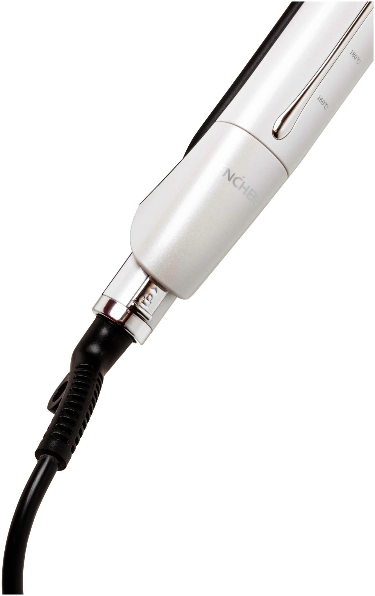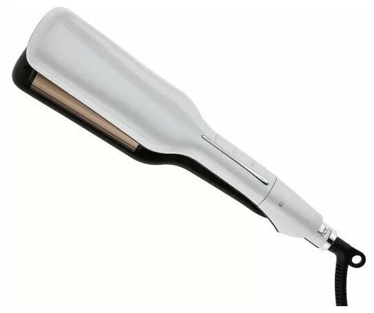 Стайлер выполнен из прочного пластика, устойчивого к постоянному термическому воздействию. Крепление шнура шарнирного типа позволяет исключить появление заломов на кабеле. Ручка имеет эргономичную форму, что обеспечивает надежный и удобный хват без риска соскальзывания