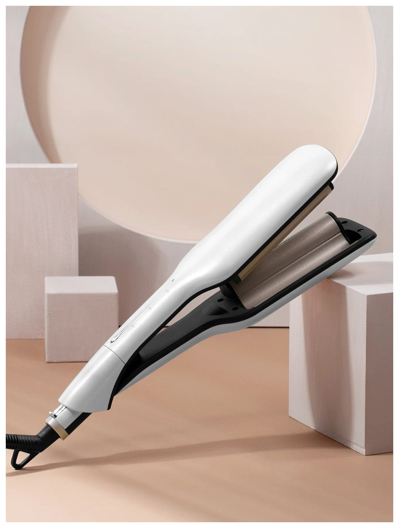 Плойка для завивки волос в изящном белом дизайне для создания красивой прически на любой случай. С ее помощью можно создать стойкую укладку с эффектом гофре. Оптимальное решение для создания эффектных и элегантных локонов для особого момента или на каждый день