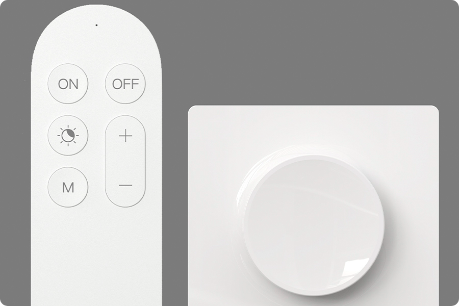 Для тех, кто предпочитает физические элементы управления, светильник Xiaomi Yeelight Ultra Slim Smart C300 поддерживает беспроводной диммер и пульт дистанционного управления. Эти устройства позволяют легко регулировать яркость света и переключаться между режимами работы без необходимости подходить к светильнику. Диммер и пульт удобно использовать в любой части комнаты, так как их можно разместить в любом удобном месте, а управление будет оставаться интуитивно понятным. Это особенно полезно для создания комфортного освещения в спальне или гостиной, где важно контролировать световой поток не поднимаясь с дивана или кровати.