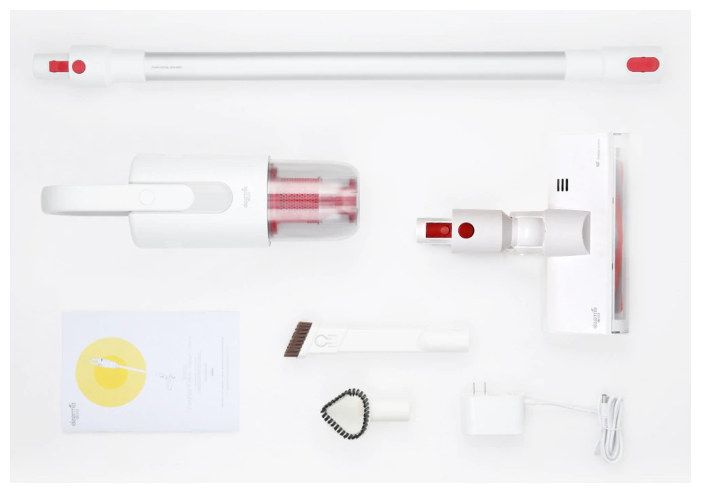 Беспроводной пылесос оснащен мощным двигателем 150 Вт, который обеспечивает всасывание под давлением 8000 Па. В комплекте с устройством поставляется несколько насадок, с помощью которых можно очистить труднодоступные и высокие места, салон автомобиля и многие другие поверхности. Присутствует циклонная система фильтрации.