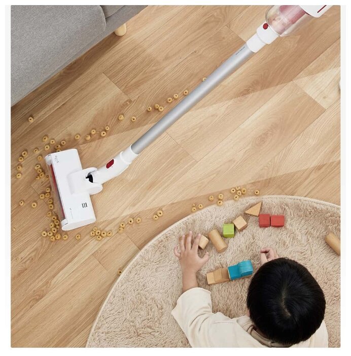 Беспроводная конструкция устройства позволяет пользователю свободно перемещаться во время уборки. Благодаря этому очищение пола будет более легким и быстрым.