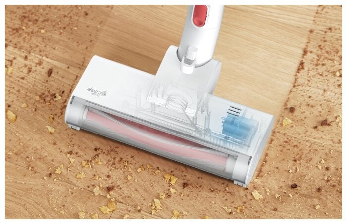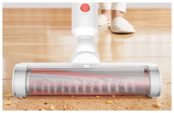 Универсальная щетка гаджета не только пылесосит, но и протирает пол. Она оснащена собственным электродвигателем со скоростью вращения до 3000 раз в минуту.