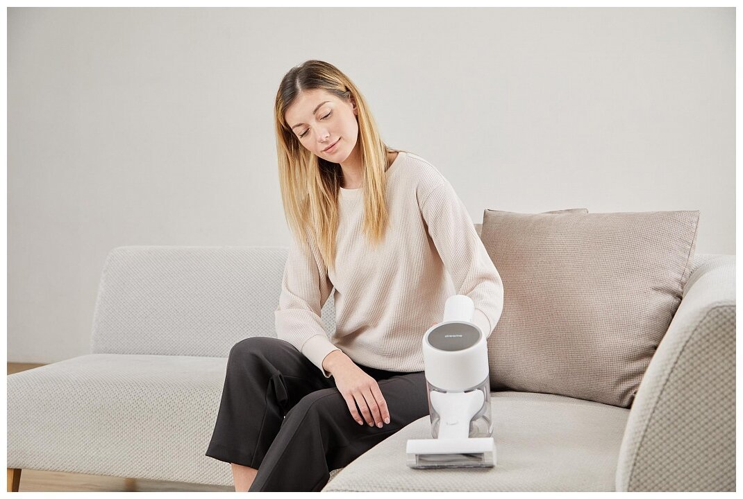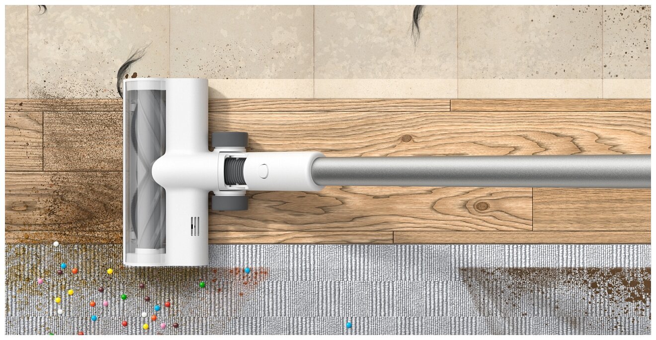 Запутанные и намотанные волосы для Dreame T10 не проблема. Валик имеет специальную конструкцию и защищен от спутываний. Даже при уборке помещений с домашними животными вы не коснетесь никаких проблем. Широкая щетка с новым V-образным дизайном автоматически подстраивается под тип поверхности. Мягкая и длинная щетина эффективно удаляет пыль, не оставляя царапин на полу. Резкая и мощная сила всасывания проникает глубоко в ткань, поглощая до 99,9% пыли, перхоти и пылевых клещей.