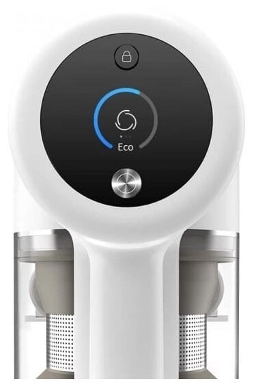 На экране отображается уровень заряда батареи, установленный режим (Eco, Medium и Turbo) и различная информация о состоянии пылесоса, щетки и фильтра. Режим всасывания можно изменить с помощью кнопки под дисплеем.