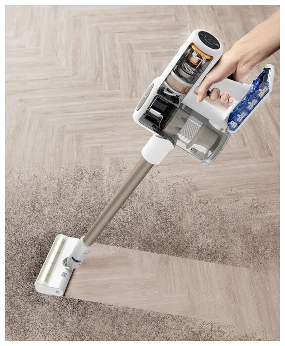 Внутри Xiaomi Dreame V10 Pro установлен бесщеточный двигатель, обеспечивающий до 100 тысяч оборотов в минуту и силу всасывания до 22000 Па. Мотор отличается не только впечатляющей мощностью, но и экономным потреблением электрической энергии.