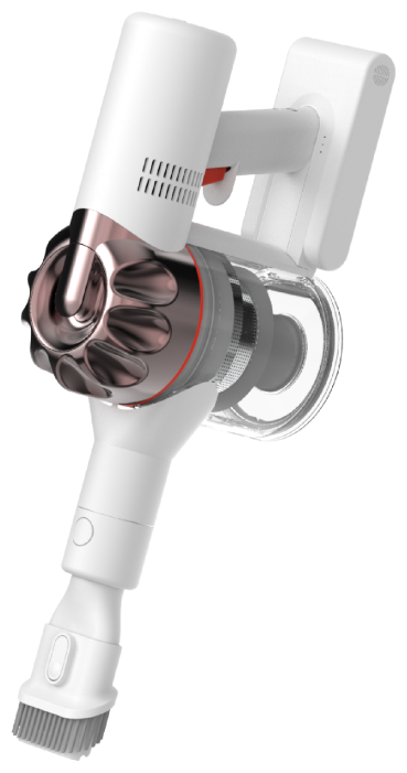 Аккумулятор и электродвигатель пылесоса Dreame размещены ближе к ручке для формирования конструкции с рациональным распределением веса, так что даже при очистке высоких поверхностей пылесос не будет утомлять руки.